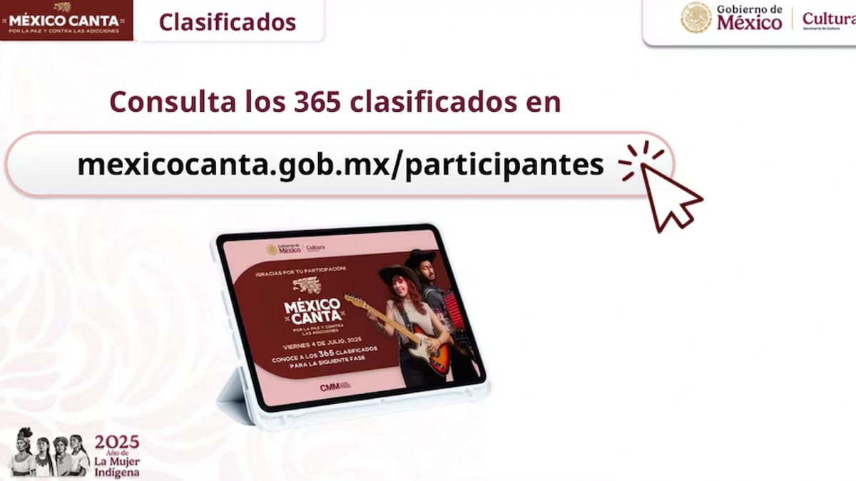 La lista completa de seleccionados del concurso México Canta, por la paz y contra las adicciones para jóvenes mexicanos y mexico-estadounidenses, es con el objetivo de fomentar nuestras tradiciones y sin necesidad de hacer apología de la violencia o delito. Se puede consultarse en la plataforma oficial: www.mexicocanta.gob.mx/participantes