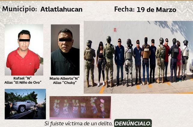 En la primera operación, fue detenido esta madrugada, “El Niño de Oro”, en un operativo realizado en el municipio de Atlatlahucan, Morelos.