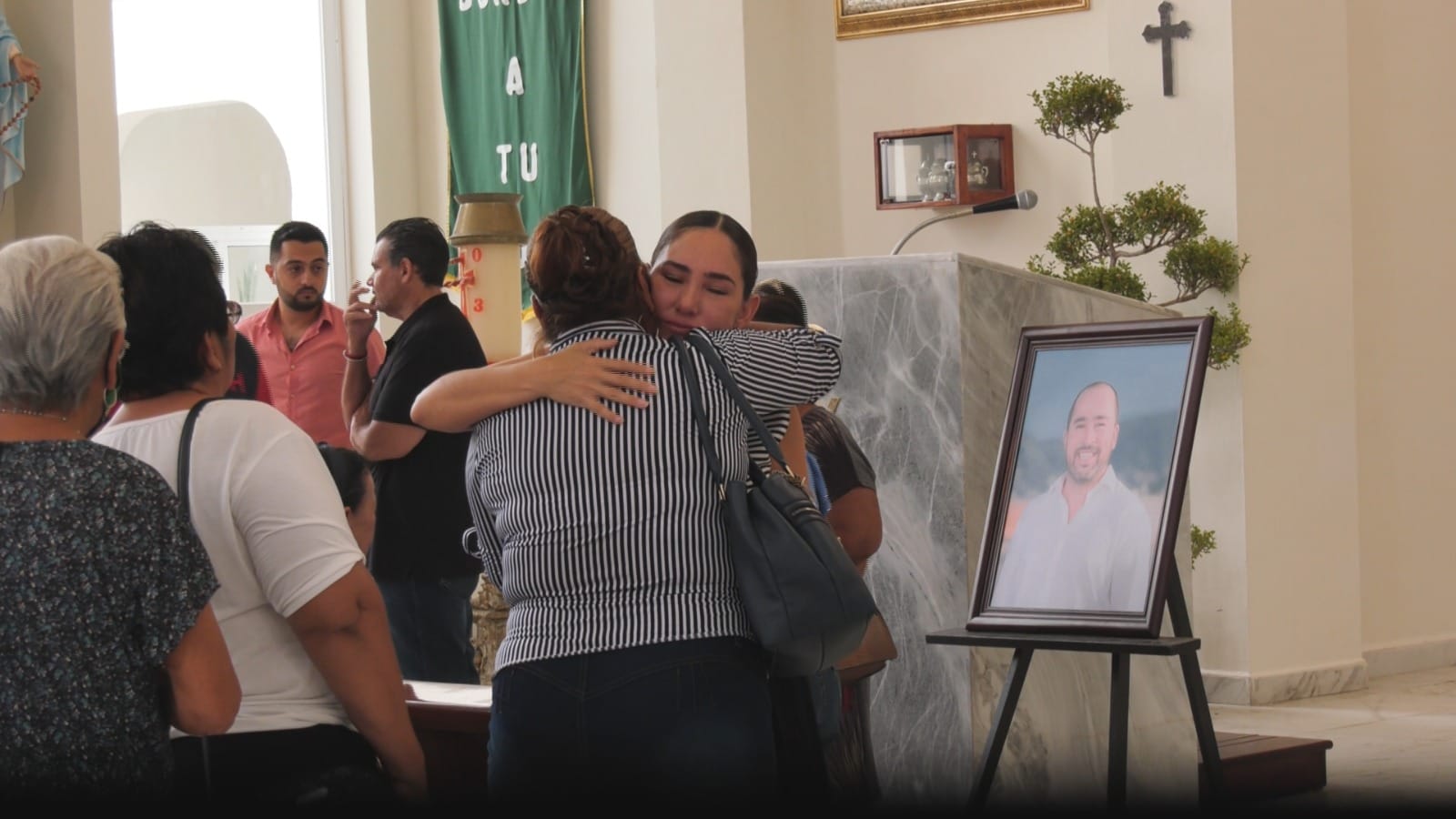 La tarde de este martes los amigos y la familia del ex priísta se reunieron en la iglesia de Covadonga, ubicada en el Fraccionamiento Las Playas para pedir por su eterno descanso.