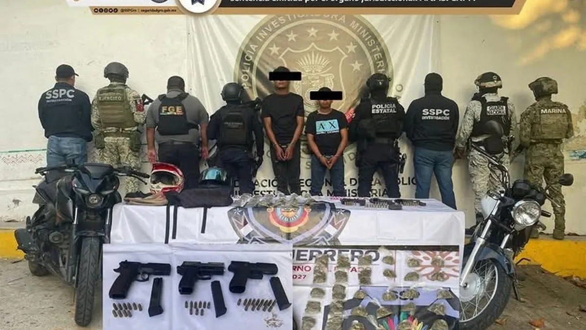 Acapulco, Guerrero. — Dos hombres fueron detenidos por fuerzas de seguridad en posesión de armas de fuego y presunta droga durante un operativo conjunto realizado en la colonia Alta Cuauhtémoc del municipio de Acapulco, informó la Secretaría de Seguridad Pública del Estado de Guerrero (SSPGro).