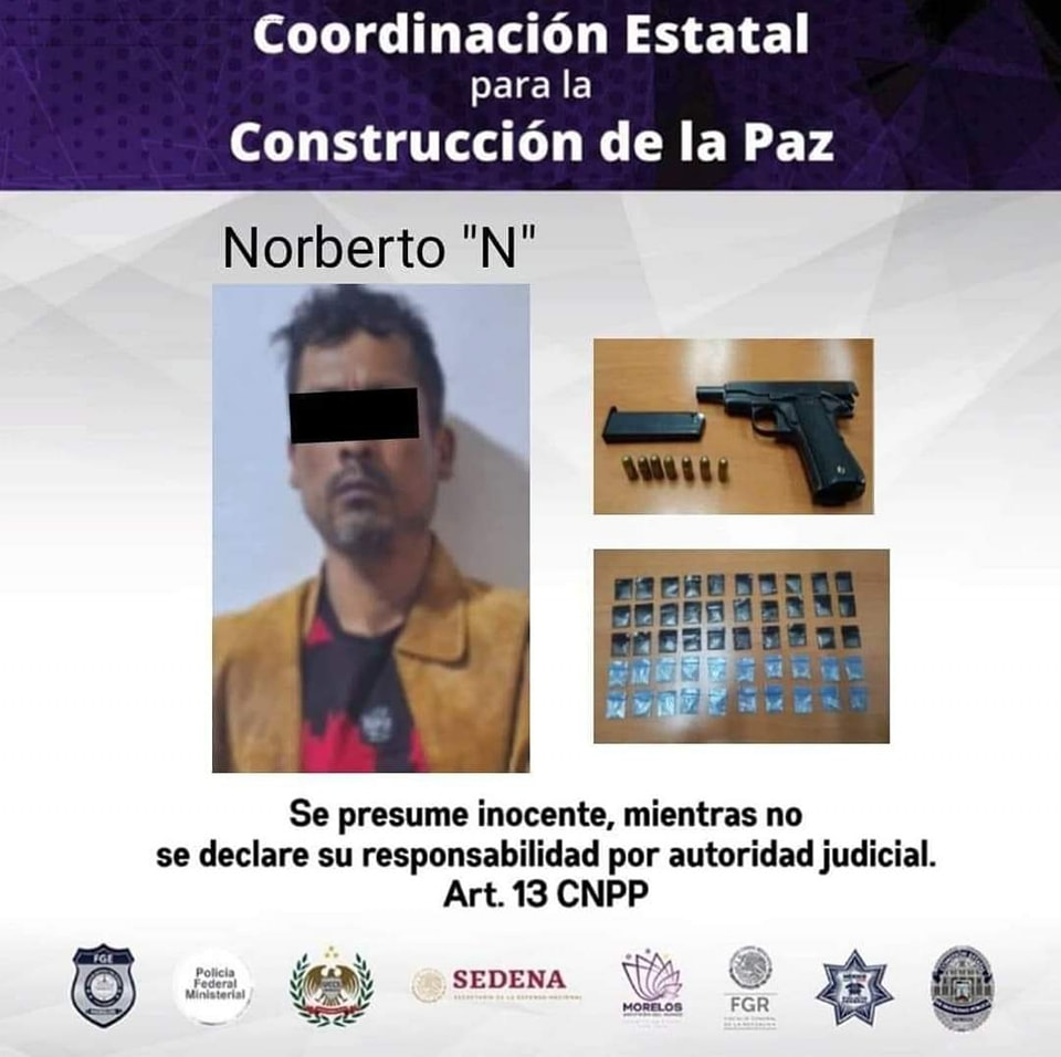 “Es importante señalar que Norberto ‘N’ cuenta con antecedentes penales de fecha 20 de junio del 2012 donde fue sentenciado por el delito de violación a la Ley Federal de Armas de Fuego y Explosivos obteniendo su libertad el 12 de febrero de 2018.