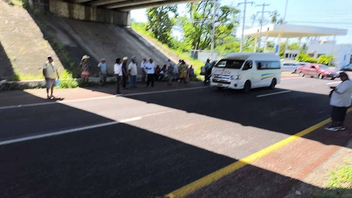 Ejidatarios del poblado de Tres Palos, municipio de Acapulco de Juárez, mantienen bloqueado en ambos sentidos el Viaducto Diamante, a la altura del puente de Metlapil, en protesta por el presunto incumplimiento de acuerdos del Gobierno del Estado de Guerrero relacionados con el pago de sus tierras.