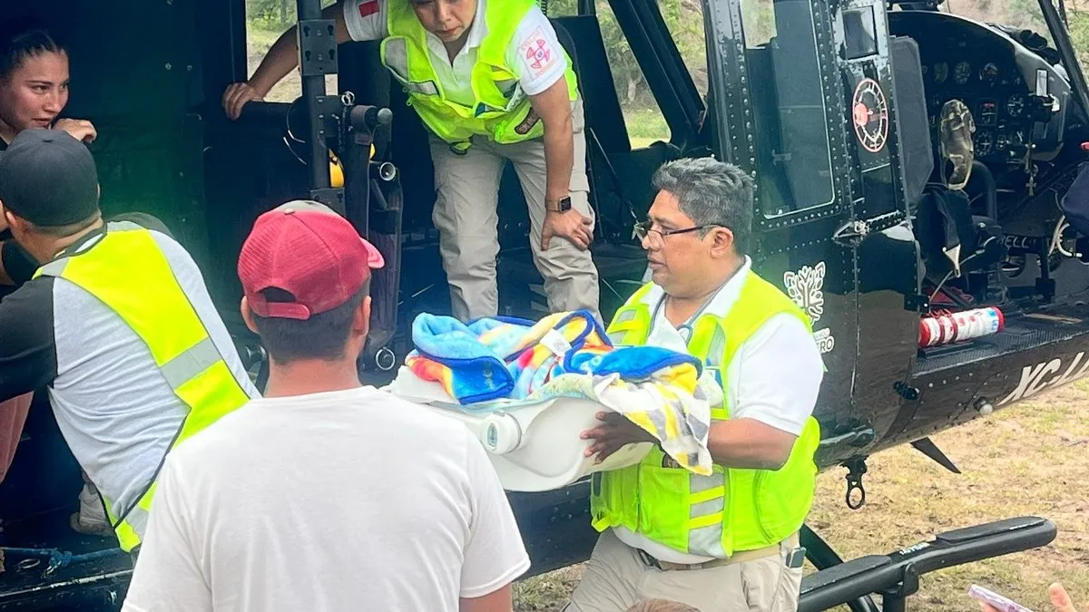 La Secretaría de Seguridad Pública de Guerrero realizó una evacuación médica aérea urgente en la localidad de Yextla, municipio de Leonardo Bravo, trasladando a un bebé de mes y medio, junto con su madre, padre y otro niño de 2 años.