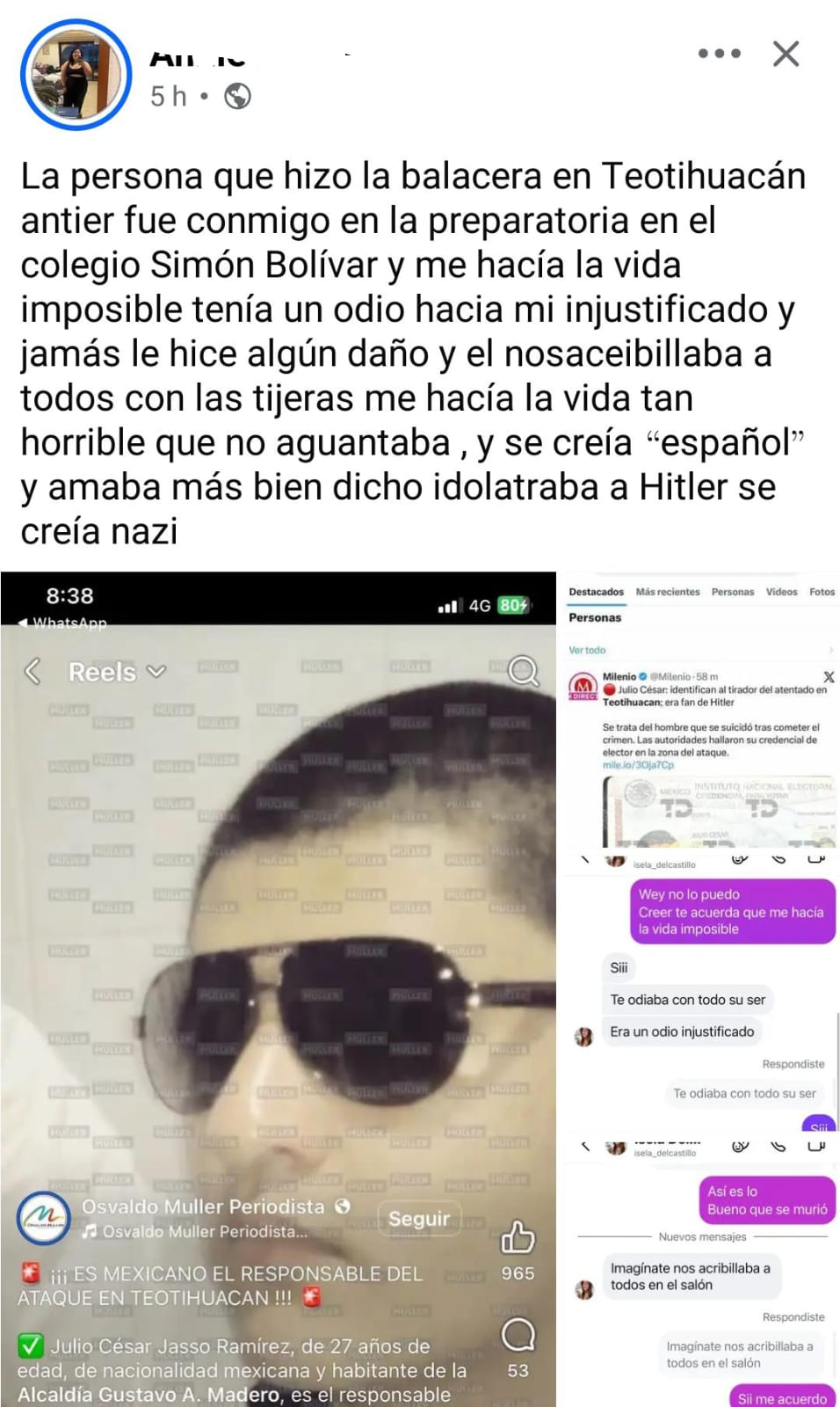 Acapulco, Guerrero.- Testimonios difundidos en redes sociales vinculan al agresor del ataque en la zona arqueológica de Teotihuacán con su etapa como estudiante de bachillerato en Acapulco. La información proviene de una publicación en Facebook y comentarios públicos de personas que se identifican como excompañeros.