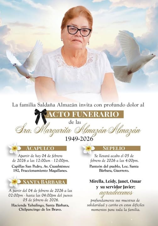Chilpancingo, Gro. — La comunidad universitaria de Guerrero se encuentra de luto tras confirmarse el fallecimiento de la señora Margarita Almazán Almazán, madre del Doctor Javier Saldaña Almazán, actual rector de la Universidad Autónoma de Guerrero (UAGro).