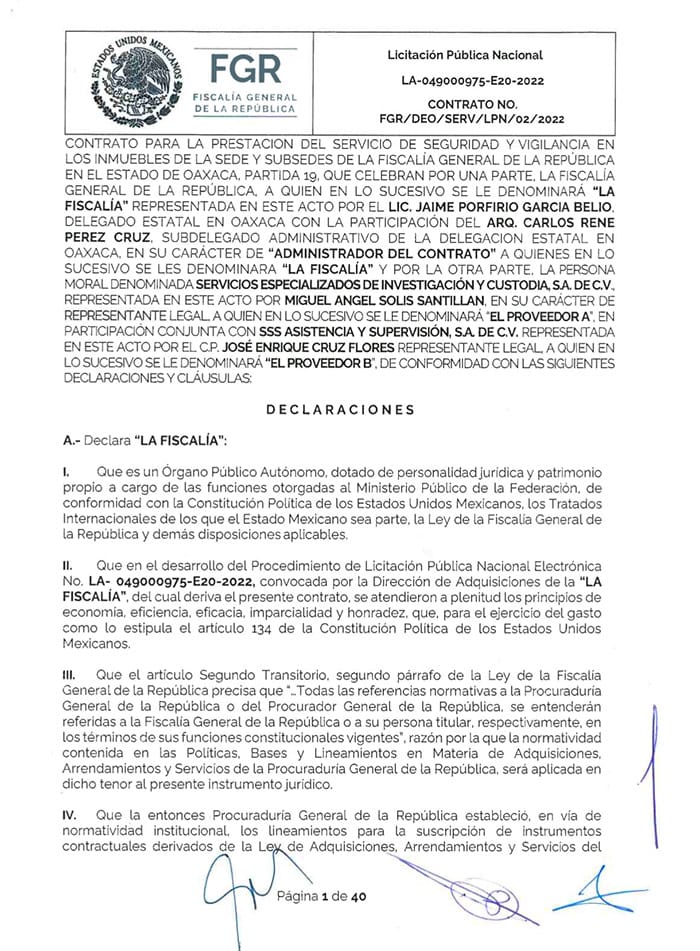 Ciudad de México.- Durante su sexenio, Andrés Manuel López Obrador prometió erradicar los contratos de seguridad privada en dependencias federales, pero la realidad evidencia un claro contraste entre su discurso y los hechos: las empresas de Raúl Rocha Cantú, empresario dueño del concurso Miss Universo, recibieron decenas de contratos millonarios para custodiar instalaciones del gobierno, incluyendo la propia Fiscalía General de la República (FGR), hoy encargada de investigarlas.