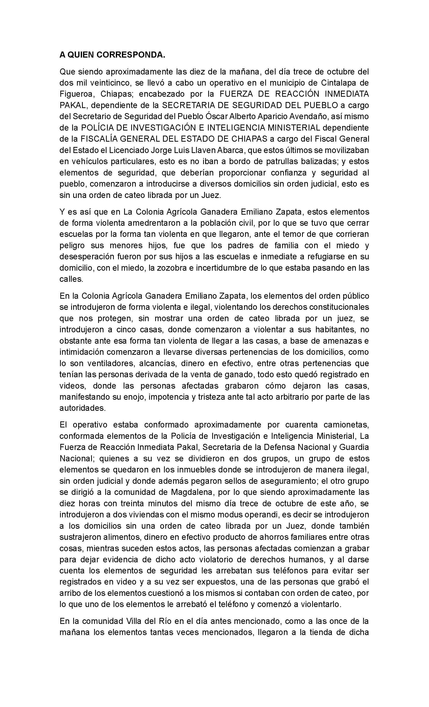 El expediente CEDH/827/2025 de la Comisión Estatal de Derechos Humanos de Chiapas documenta las múltiples violaciones cometidas durante y después del arresto, pero no se emitió ninguna recomendación para proteger al gobierno chiapaneco.