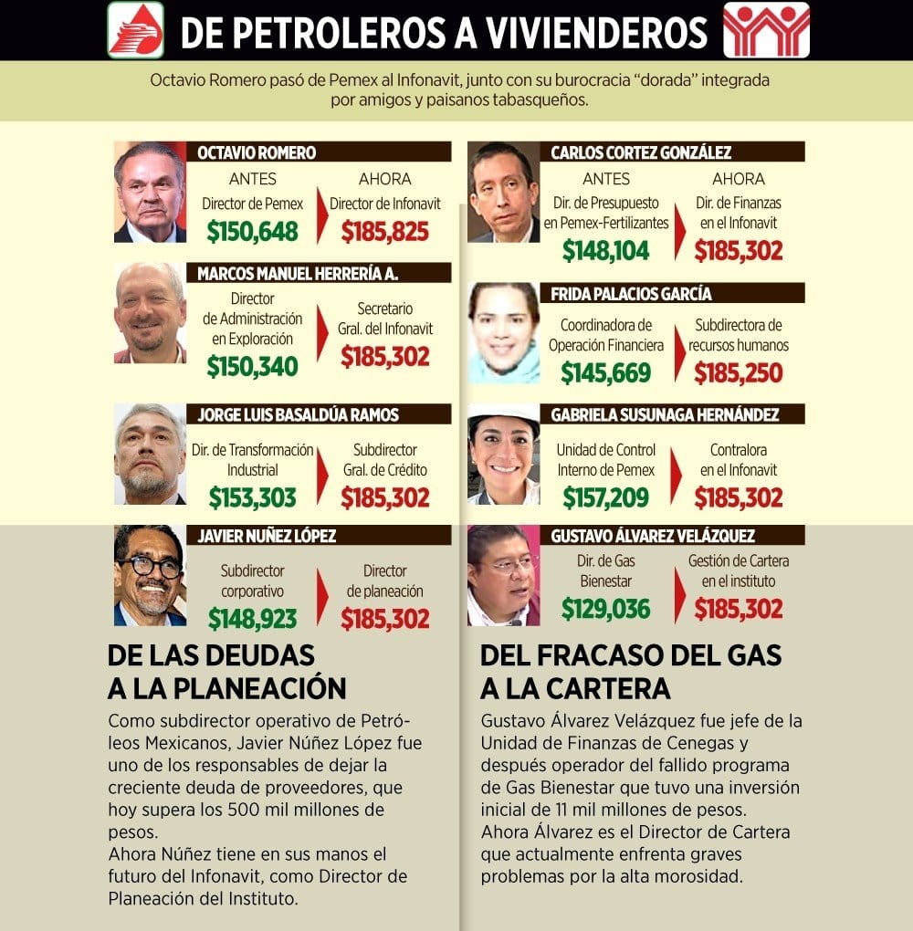 La presencia de excolaboradores de Pemex en el Infonavit no sólo obedece a afinidades personales. Romero Oropeza, ingeniero agrónomo tabasqueño y uno de los hombres más cercanos a López Obrador desde sus años en el gobierno de Tabasco, ha reproducido en el instituto la misma red de confianza que consolidó en la petrolera.