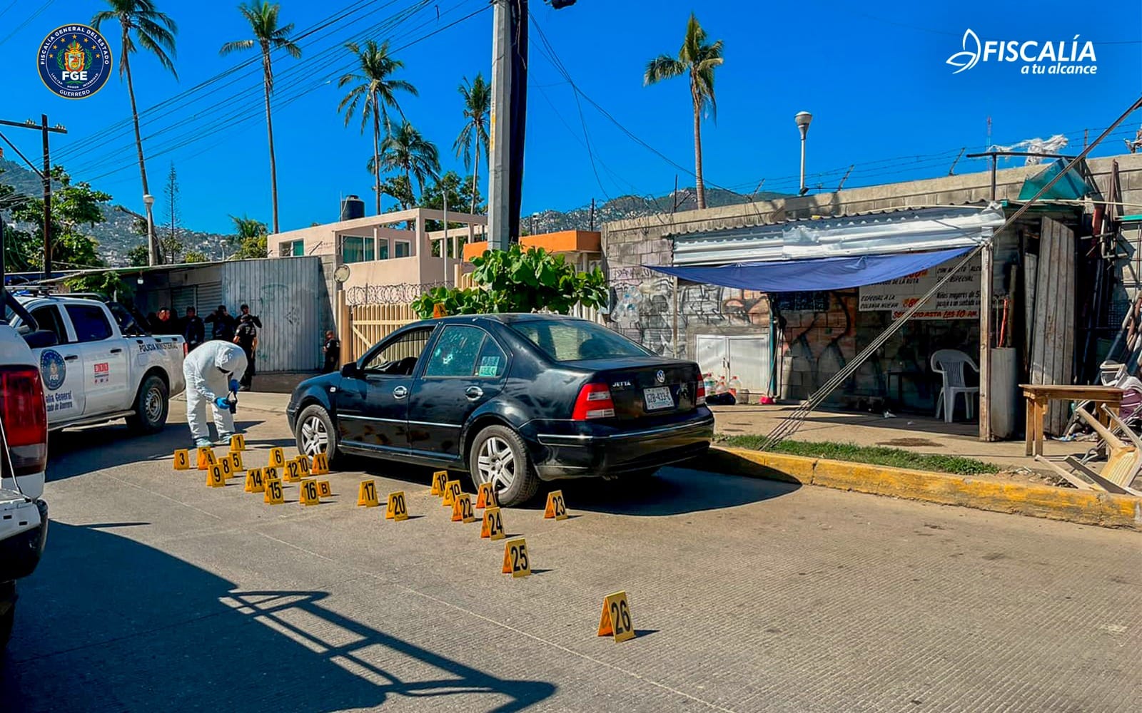 La Fiscalía General del Estado, desmintiendo informes iniciales, afirmó que el ataque no ocurrió en el sitio de taxis de Las Cruces, sino que fue una agresión directa a un vehículo particular.