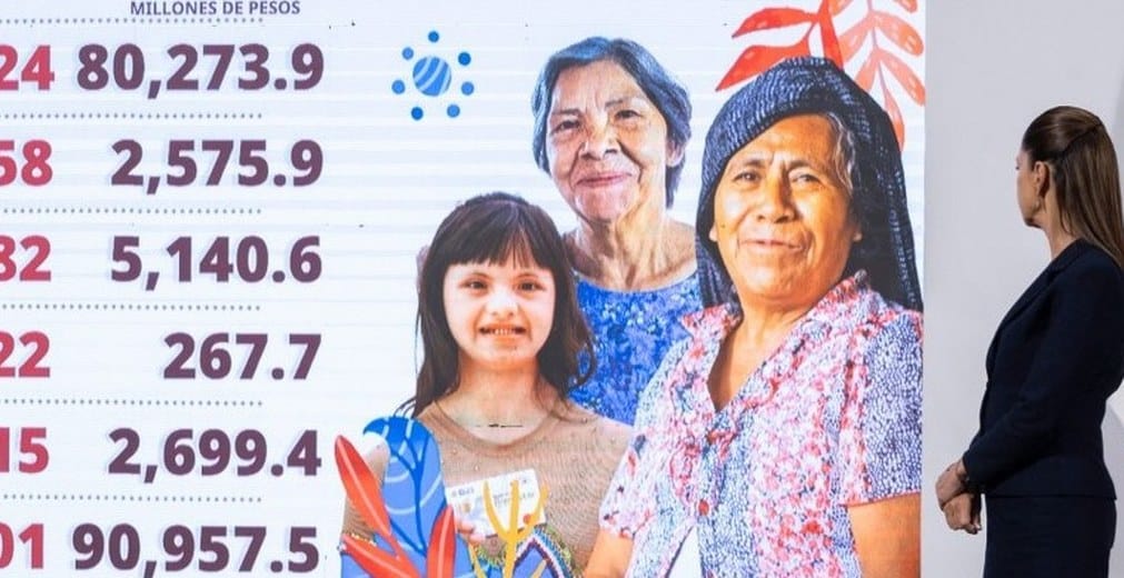 “Este año estamos aumentando a más familias, porque va a aumentar, vamos a cumplir con nuestro compromiso con las mujeres de 60 a 64 años, al cierre del año todas recibirán la pensión Mujeres Bienestar; y el próximo año vamos a niños y niñas de primaria (con la beca Rita Cetina)”.