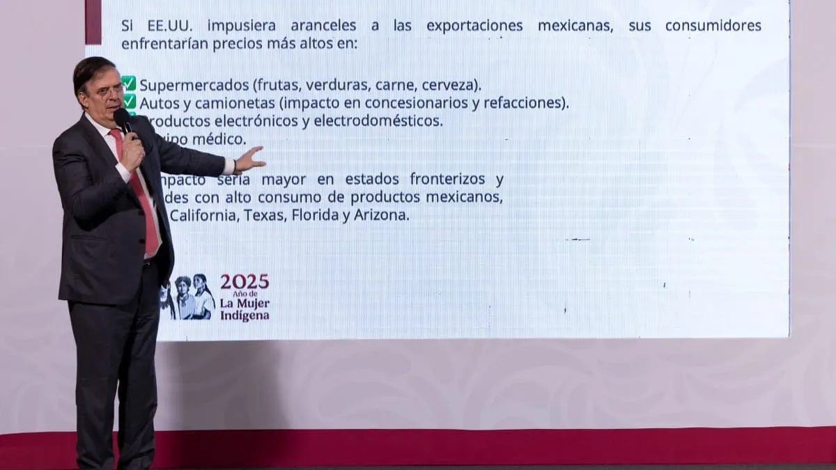 Ebrard dijo que las tarifas son “un error estratégico” de Trump, pues dañarán directamente a los estadunidenses, encareciendo productos esenciales como automóviles, computadoras, televisores y refrigeradores, de los que México es el principal proveedor.