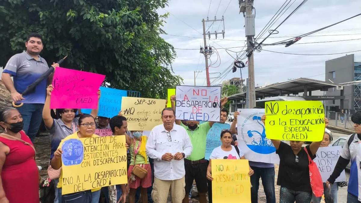Acapulco, Gro.— Padres de familia y estudiantes del Centro de Atención para Estudiantes con Discapacidad (CAED) se manifestaron este lunes frente al Ayuntamiento para exigir mayor presupuesto, la habilitación de aulas dignas, el pago de salarios a cuatro docentes y, en general, mejores condiciones para la educación especial en Guerrero.