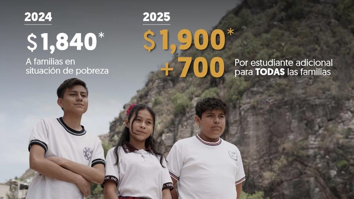 Para educación básica por familia recibían 1,840 pesos, independiente del número de hijos, ahora además del aumento de una base, se dará un adicional a la familia. Con lo que se les dará 1,900 pesos de base, más 700 pesos por cada estudiante más que se tenga en la familia.