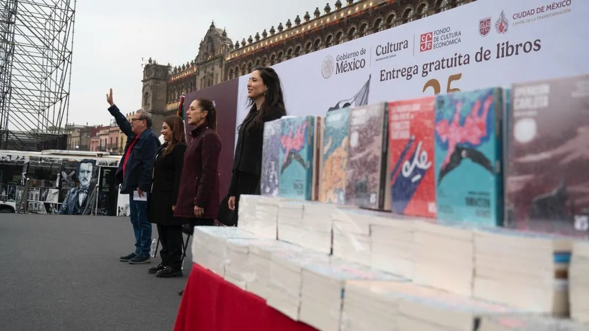 Ciudad de México.- La presidenta Claudia Sheinbaum encabezó este 17 de diciembre, junto con el Fondo de Cultura Económica (FCE), el arranque de la entrega gratuita de la colección 25 para el veinticinco en el Zócalo de la Ciudad de México, una iniciativa que prevé la distribución de 2.5 millones de libros en México y otros países de América Latina.