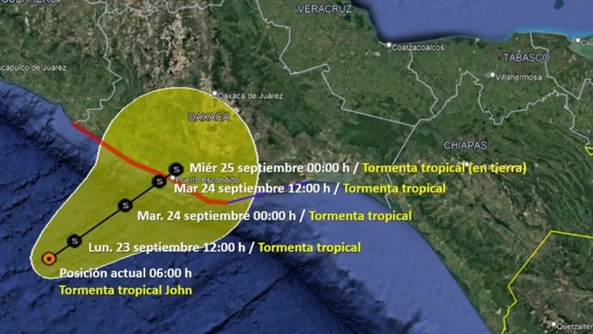 “John” ocasionará lluvias puntuales torrenciales en Guerrero y Chiapas; puntuales intensas en Veracruz; puntuales muy fuertes en Puebla y Morelos; y puntuales fuertes en el Estado de México.