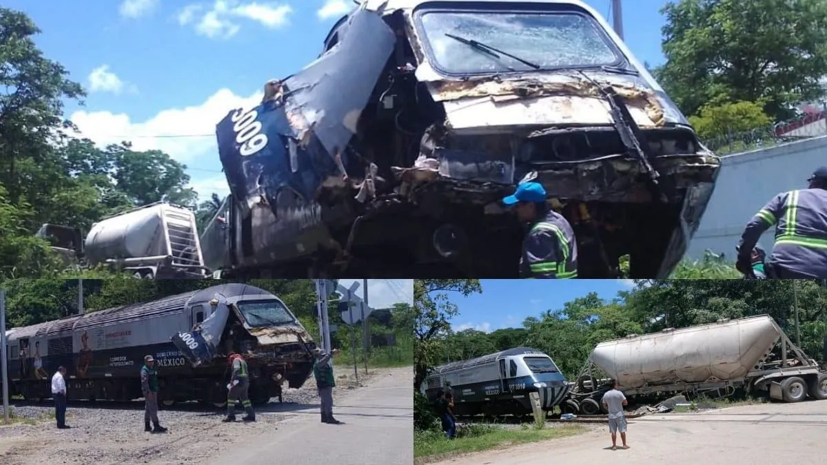 El impacto ocurrió en las inmediaciones de la estación Pino Suárez, en Tabasco, en un cruce a nivel, unos metros adelante de la placa kilométrica 267 del Tren Interoceánico.