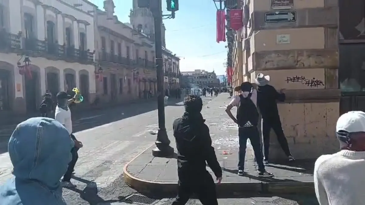 Morelia, Michoacán.- Por segundo día consecutivo, el Centro Histórico de Morelia fue escenario de enfrentamientos entre estudiantes y elementos de la Guardia Civil, durante una nueva jornada de protestas para exigir justicia por el asesinato del alcalde de Uruapan, Carlos Manzo Rodríguez.