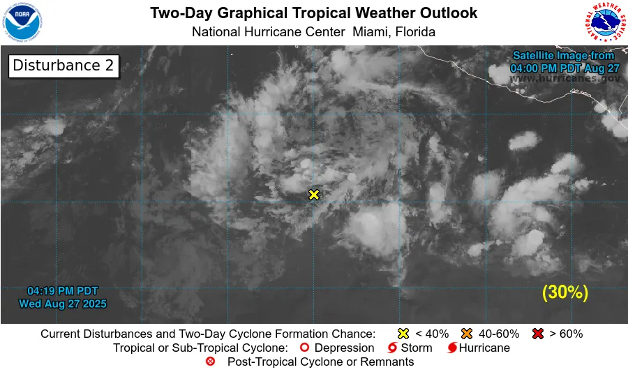 El reporte señala que la onda tropical avanza hacia el oeste-noroeste a una velocidad aproximada de 24 kilómetros por hora (15 millas por hora), con posibilidad de convertirse en depresión tropical durante el fin de semana mientras se desplaza hacia la parte central y occidental de la cuenca del Pacífico oriental.